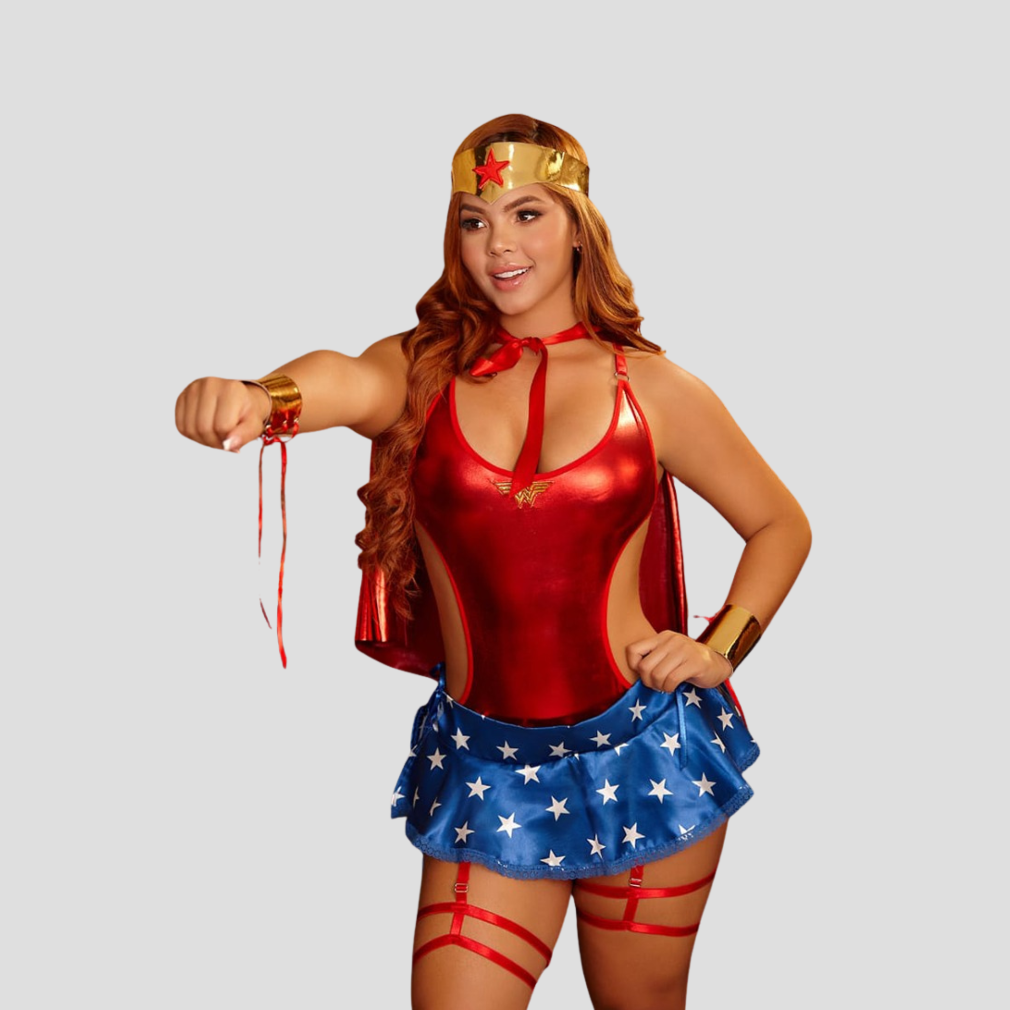 esata tu fuerza interior con este impresionante disfraz de Mujer Maravilla sexy para mujer, ideal para destacar en fiestas temáticas, eventos de cosplay o noches donde quieras irradiar poder y elegancia.