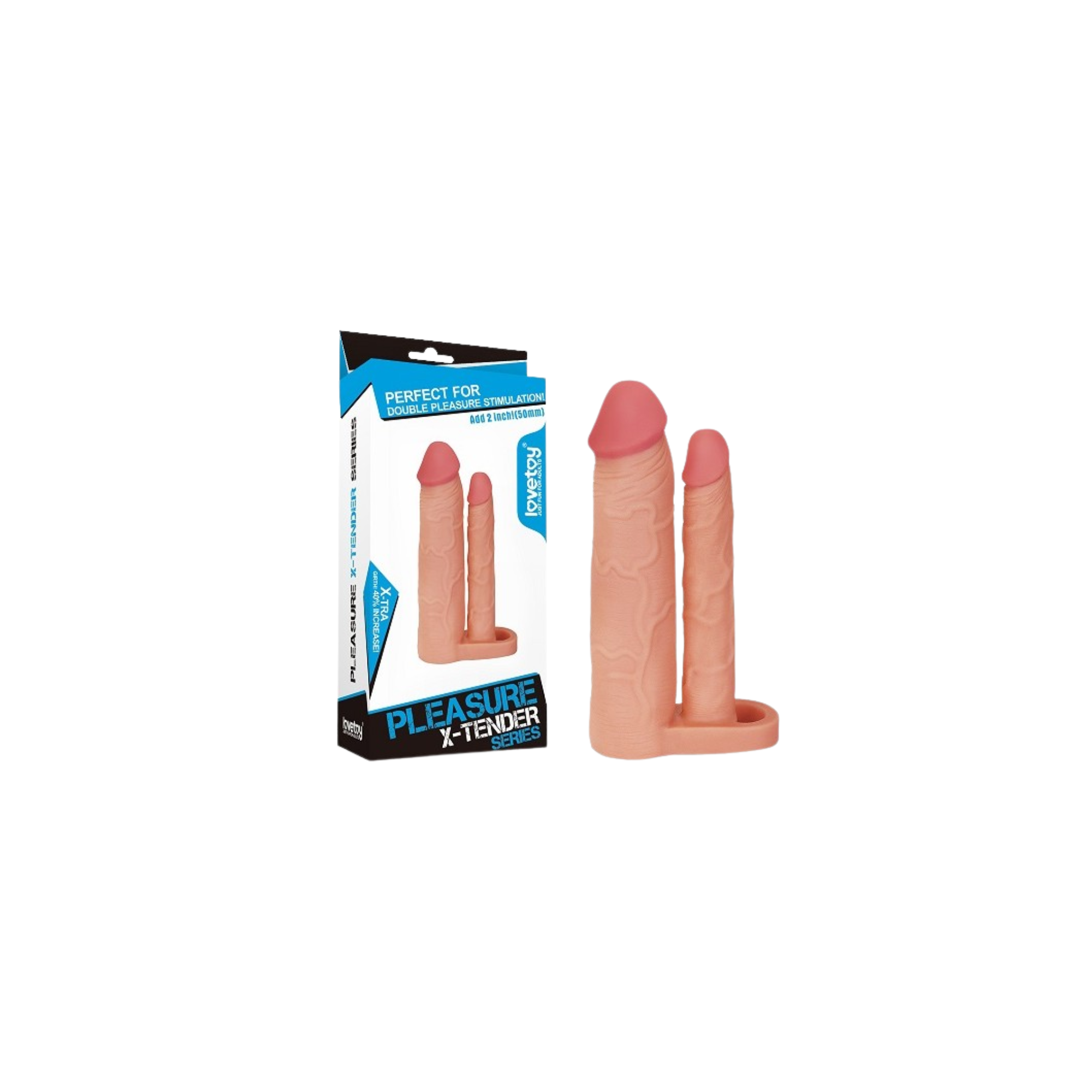Descubre el poder del doble placer con la funda Pleasure X-Tender, diseñada para añadir 5 cm de longitud y duplicar la estimulación con su estructura dual. Esta funda cuenta con dos ejes: uno principal para penetración profunda y otro más delgado para estimular simultáneamente el clítoris o el ano, dependiendo de la posición y la fantasía.