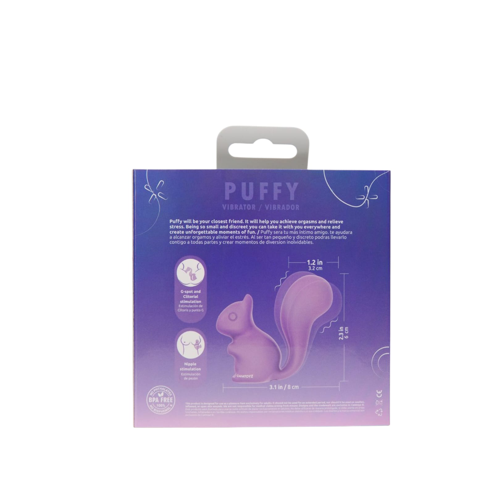 Tierno por fuera, travieso por dentro. El Puffy Lolly de CAMTOYZ es un vibrador con forma de ardilla que combina diseño adorable con poderosas vibraciones. Su colita no es solo decoración… es puro placer. Perfecto para la estimulación externa y el juego discreto.
